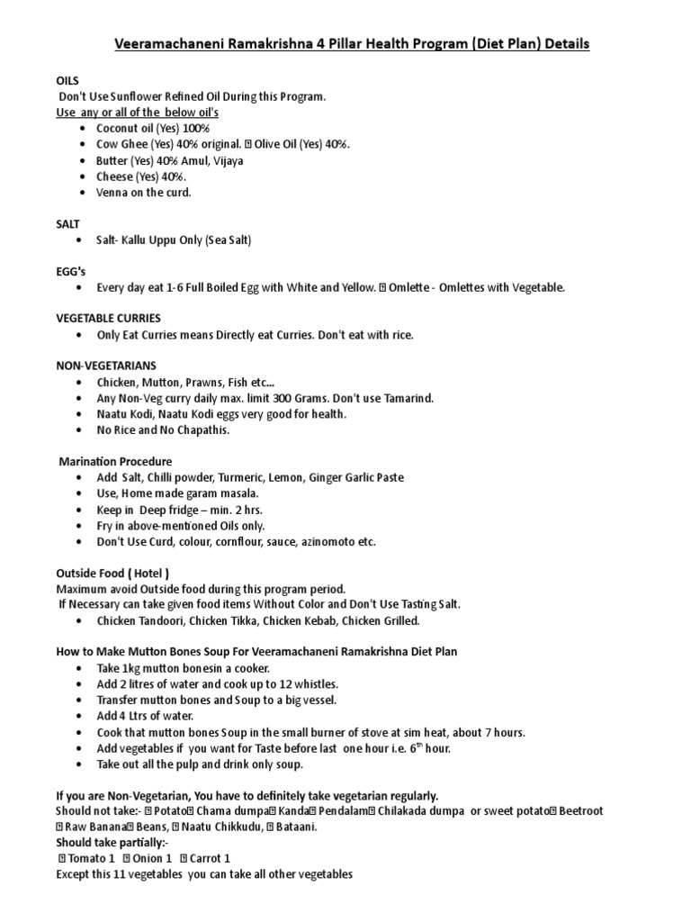 Check out diet plan program weight loss items for diet diet chart telugu english complete program side effects recipes reviews and more. Veeramachaneni diet is a desi version of famous keto diet being peddled by veeramachaneni ramakrishna rao. The diet plan remains the same for every body.